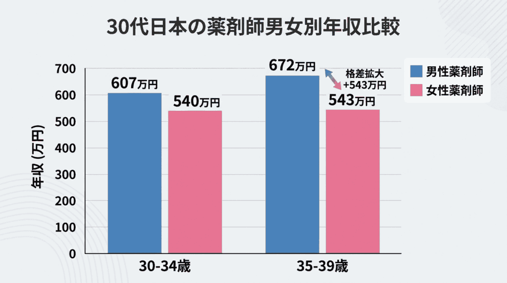 同じ30代薬剤師でも、男性と女性では平均年収に大きな差が生じています。