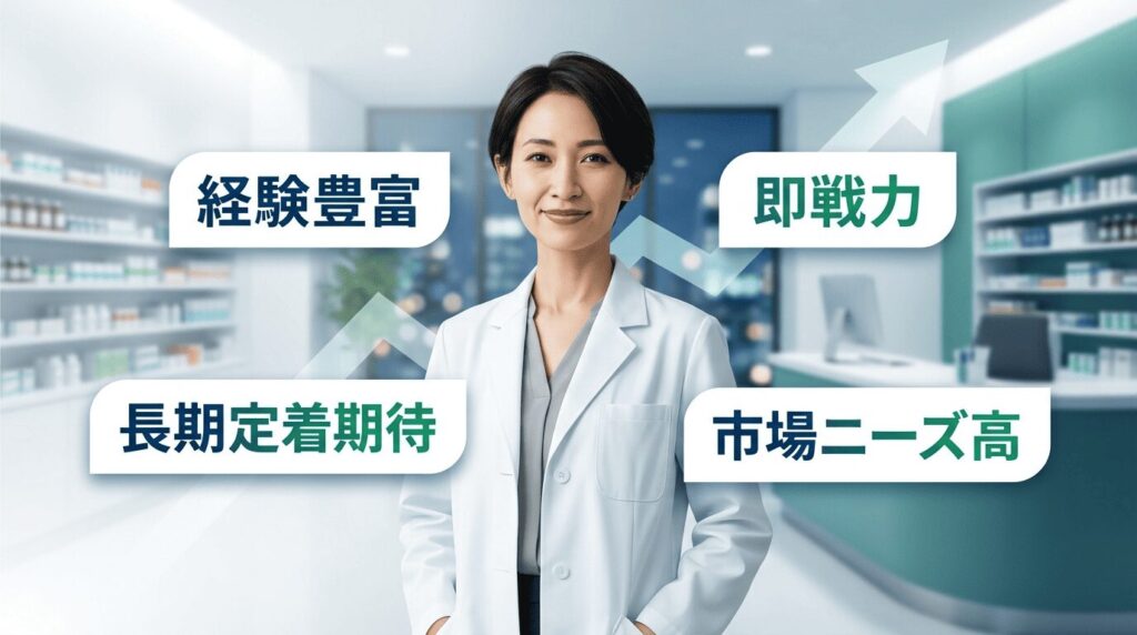 30代薬剤師は、転職市場でニーズが高く、書類選考の通過率という観点では他の年代と比べても転職難易度が比較的低い年代とされています。業務経験が積み重なっていること、即戦力として期待されやすいこと、そして長期的に職場に定着してくれる可能性がある点が、採用側から評価されやすい理由です。