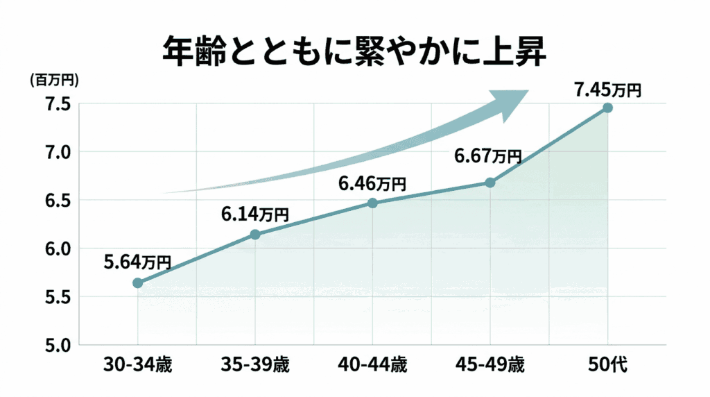 30代前半で約564万円、30代後半で約614万円と、5年間でおよそ50万円の上昇が見られます。ただし、これはあくまで全業種・全地域の平均値です。実際には勤務先や地域によって大きな差が生じるため、この数字はあくまで「自分の位置を測るための目安」として捉えてください。