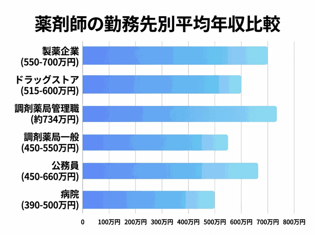 - 製薬企業・企業: 550〜700万円(管理職・外資系はさらに上)