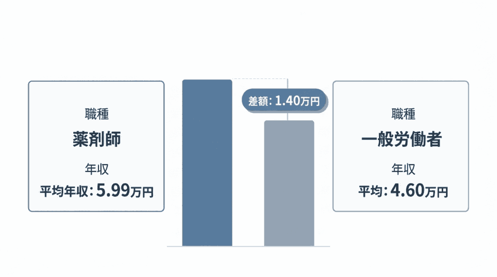 薬剤師の平均年収は約599万円と、一般労働者の水準を大きく超えています。「低すぎる」という印象は、医師との年収差や高額な学費との対比、昇給の頭打ちといった構造的な要因から生まれているものであり、客観的に見れば「低すぎる」とまでは言えないのが実態です。