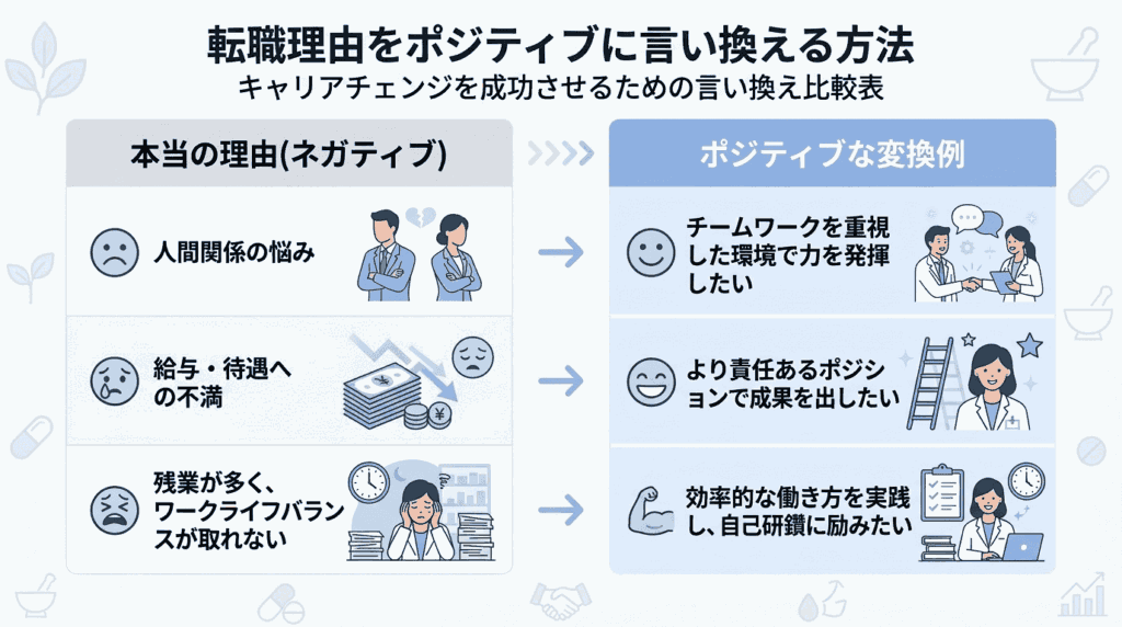 以下に、よくある転職理由と変換の方向性をまとめます。