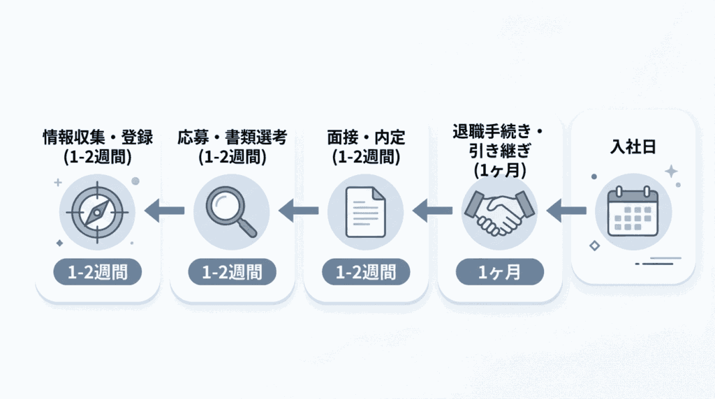 - 転職サービスへの登録・情報収集:約1〜2週間